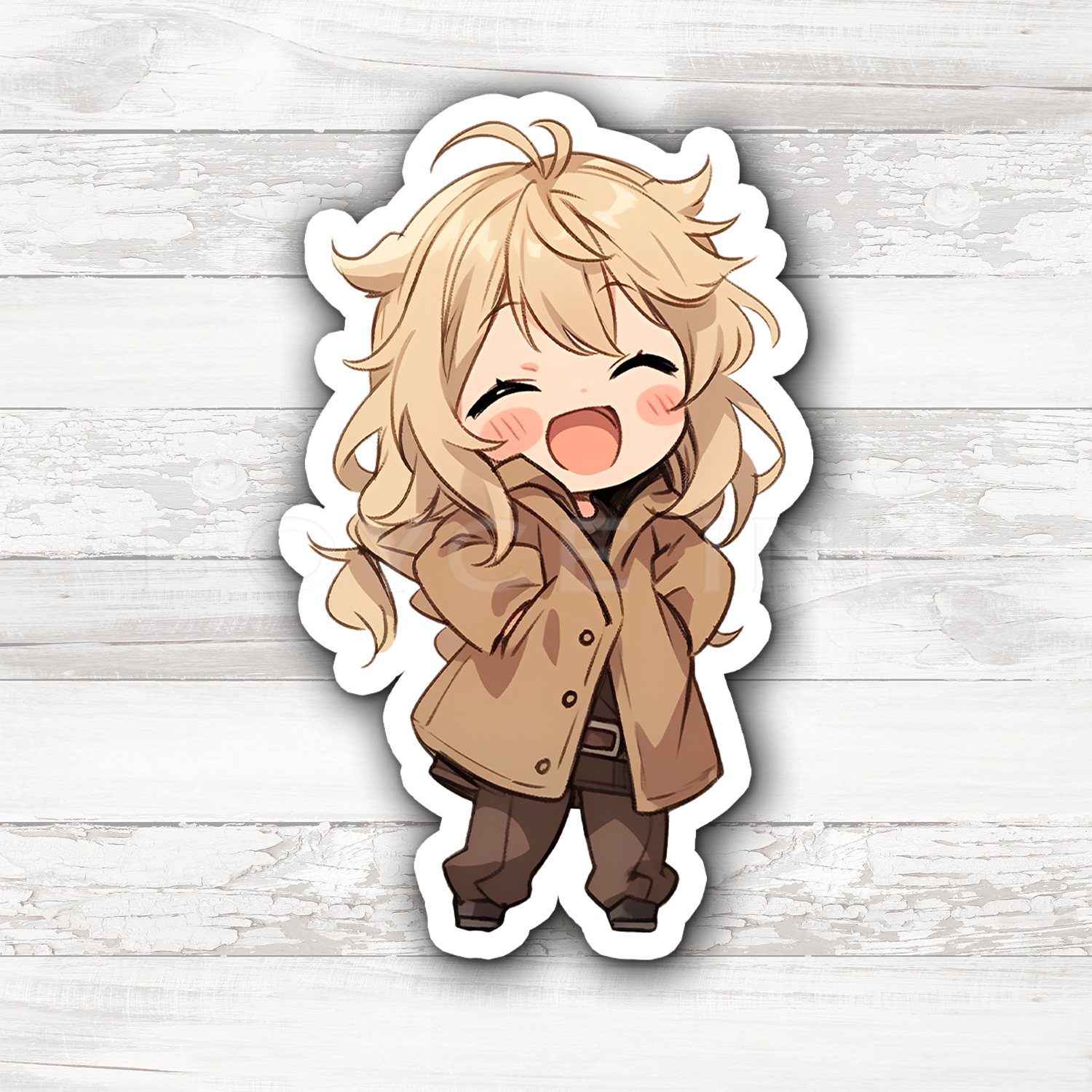 3" Sticker | Adorable Blonde Chibi in Trenchcoat