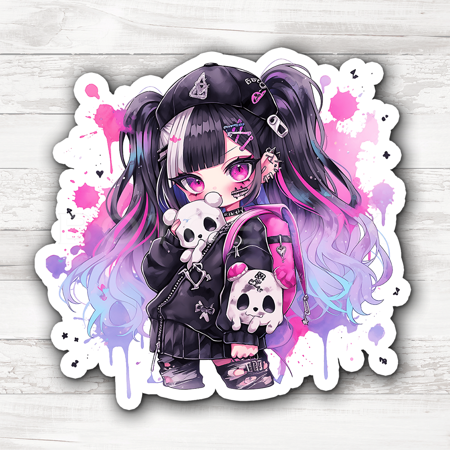 3" Sticker | Cute Goth Chibi Pink & Black
