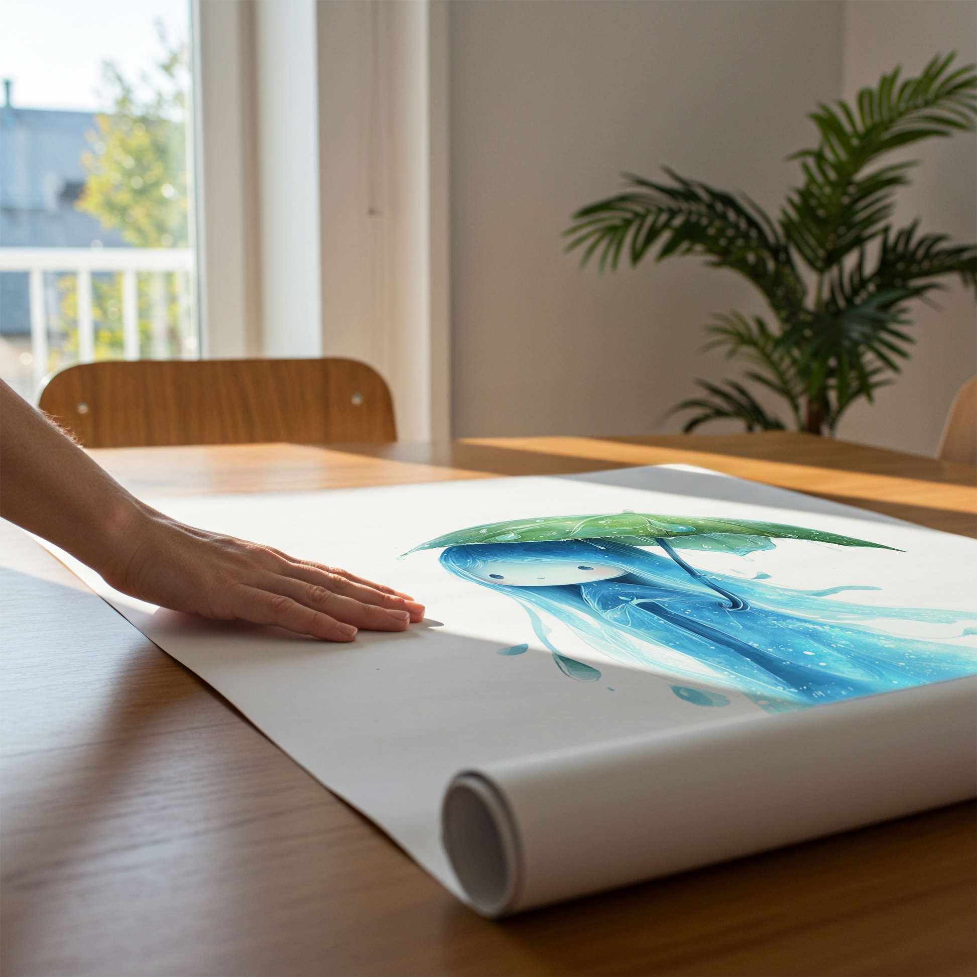 This sweet water fairy illustration would be wonderful for a nursery, child's bedroom, or anywhere you want to add a touch of gentle magic and tranquility.